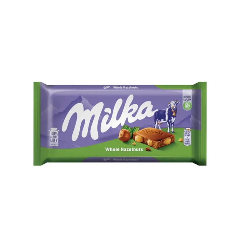 شکلات تخته ای فندق کامل میلکا 100 گرمی whole hazelnuts